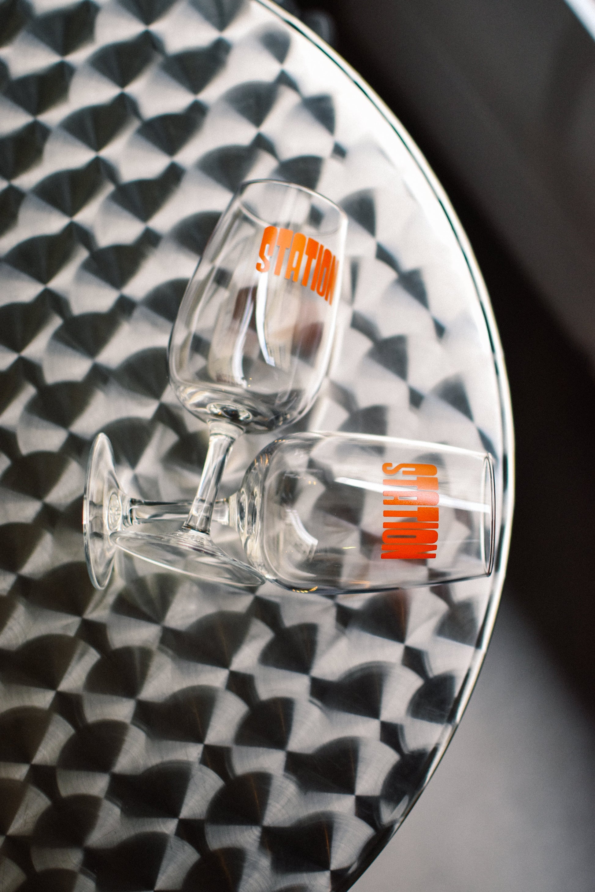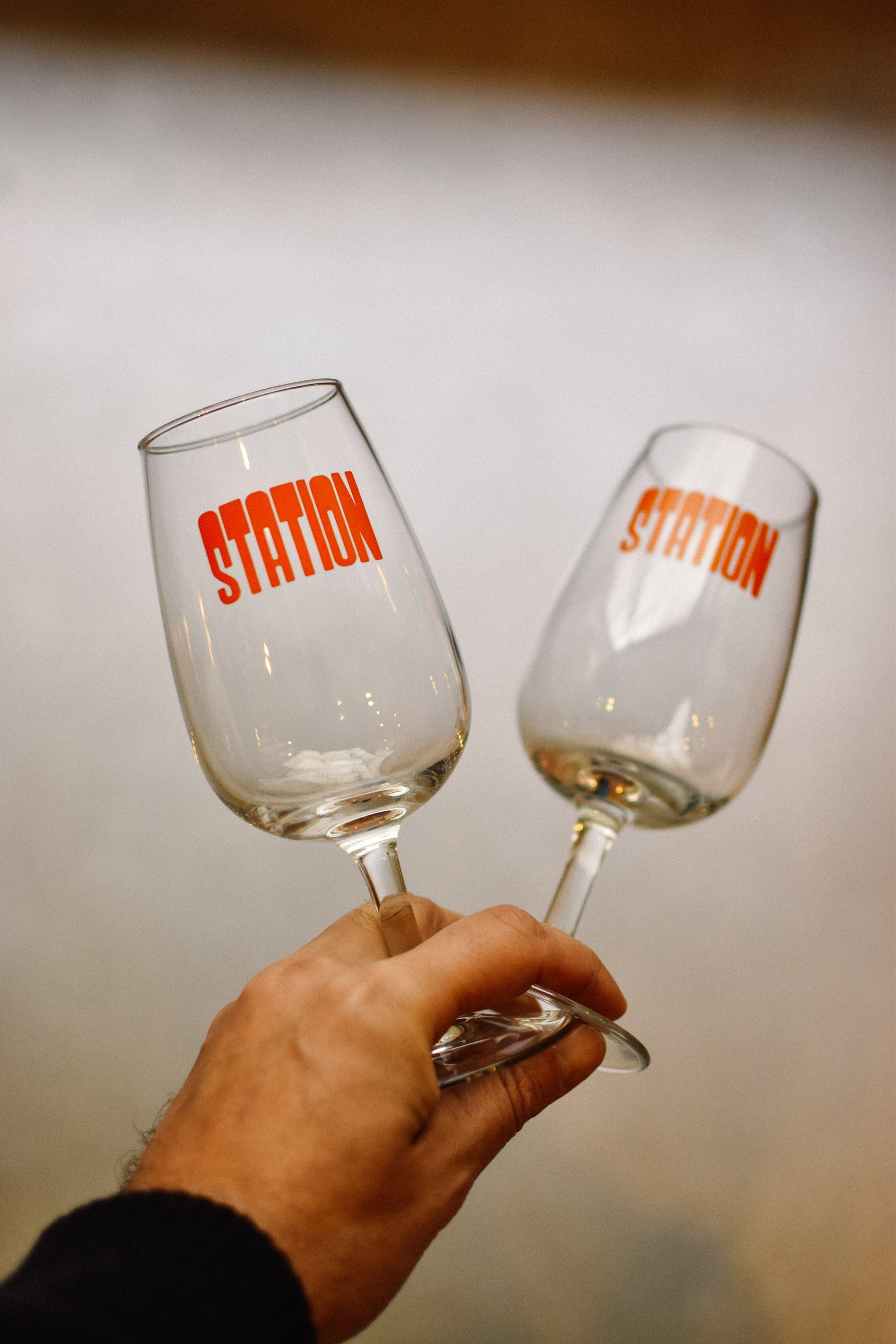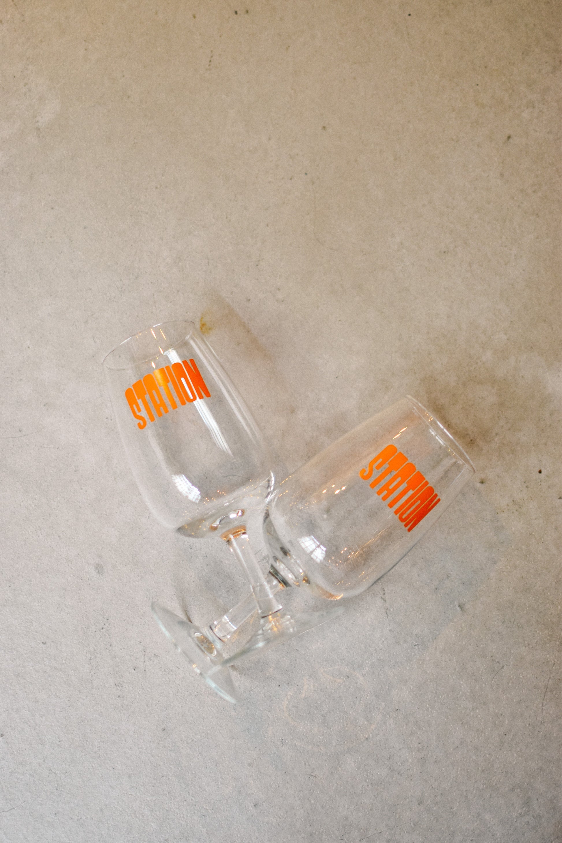 Un verre de dégustation 31cl au logo 'STATION' orange pétard pour y accueillir les vins les plus natures du moment.